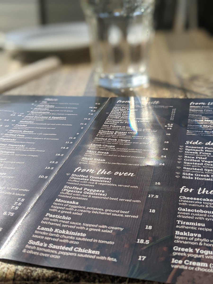 The menu at Sofia's showcases a variety of Mediterranean dishes, each crafted with care and attention to detail. Not to be missed are the Dolmades (stuffed grape leaves) and the grilled feta served with toasted pita that consistently receive rave reviews from patrons. The Kids Pita Pizza, featuring gyro meat and mozzarella, is a delightful option for the little ones, served alongside other yummy choices like Kids Grilled Chicken and Kids Pasta.